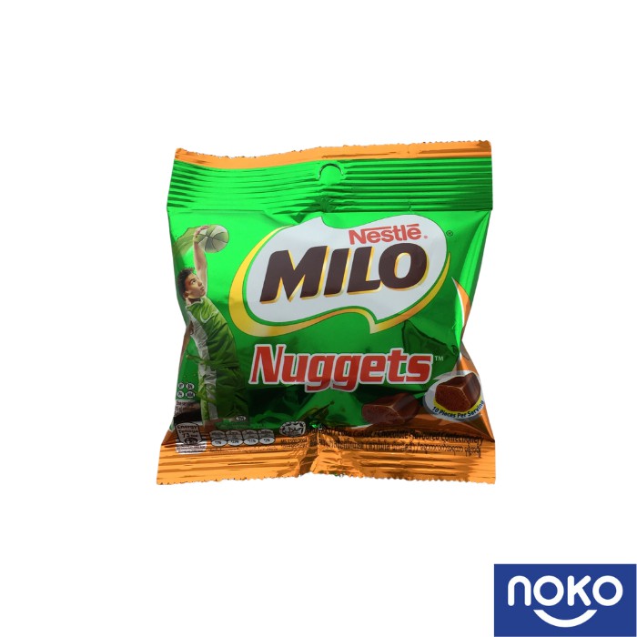 Nestlé Milo Nuggets Chocolate Flavoured Confectionery 25g. Add Milo Nuggets 75g Add add Milo Nuggets 75g to trolley. Only MILO has the winning combination of Champion Energy Nutrients milk and delicious taste that kids love to keep them active and strong.