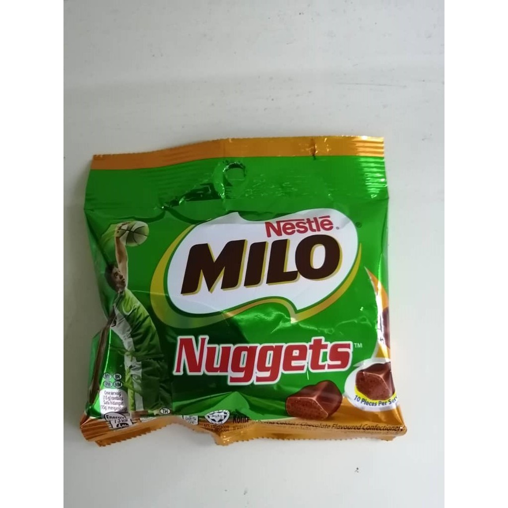 Great value and widest selections of more than 12000 items at a click. Add Nestlé Milo Nuggets Chocolate Flavoured Confectionery 25g Add add Nestlé Milo Nuggets Chocolate Flavoured Confectionery 25g to trolley. Milo nuggets 25g.
