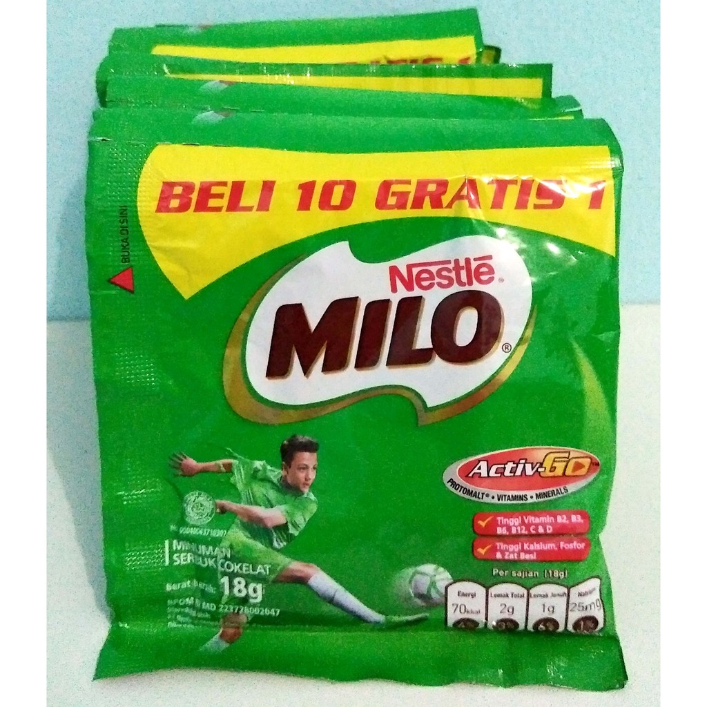 Milo Sachet 1 Renceng 10 Sachet 22gr Renceng Susu Nestle. Harga Milo Malaysia sachet 18 free 3. Milo 3 in 1 Active Go 350 Gram 10 sachet x 35 gram.